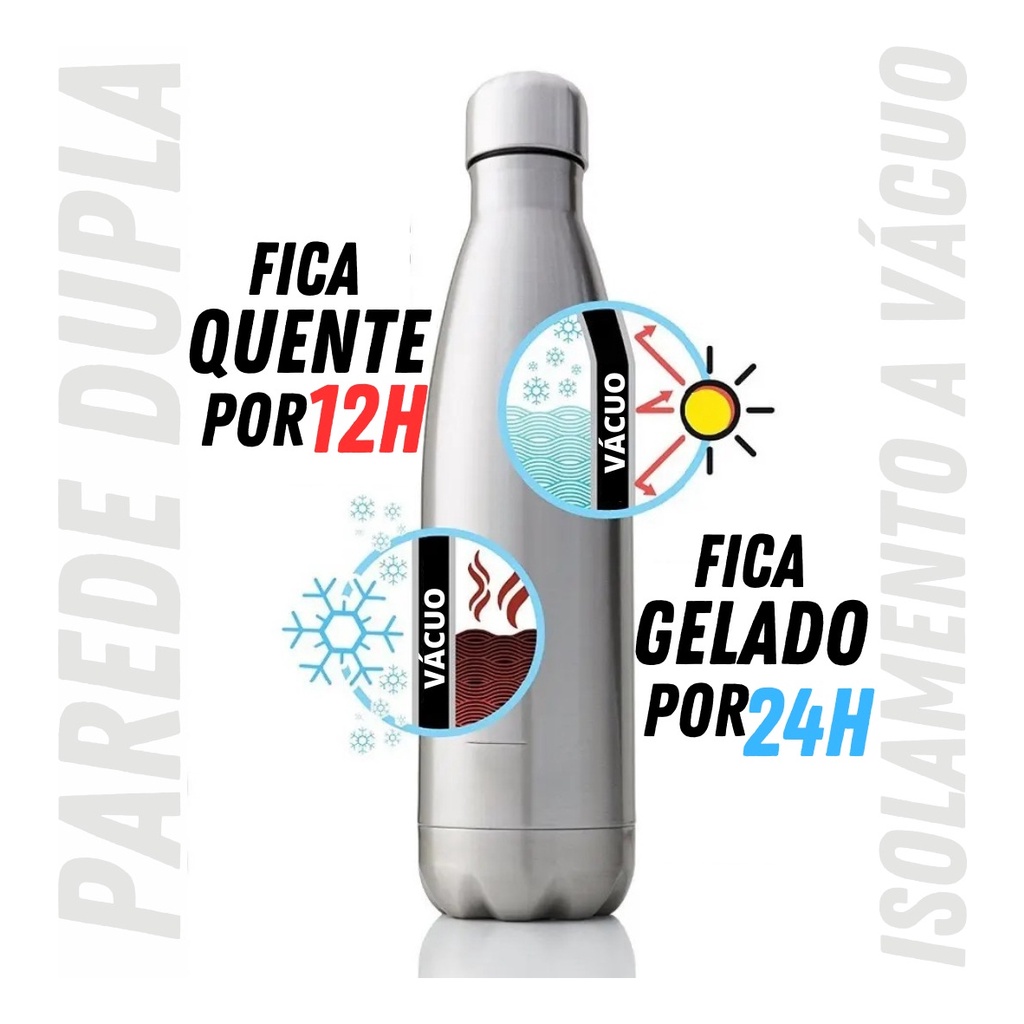 Com parede dupla de isolamento e tampa a vácuo, ela conserva a temperatura de bebidas quentes e frias por muito mais tempo (6 horas para quentes e 12h para frias), além de evitar vazamentos e derramamentos. É uma garrafa térmica ideal para o dia a dia, para viagens e para atividades como piqueniques e tardes no parque.